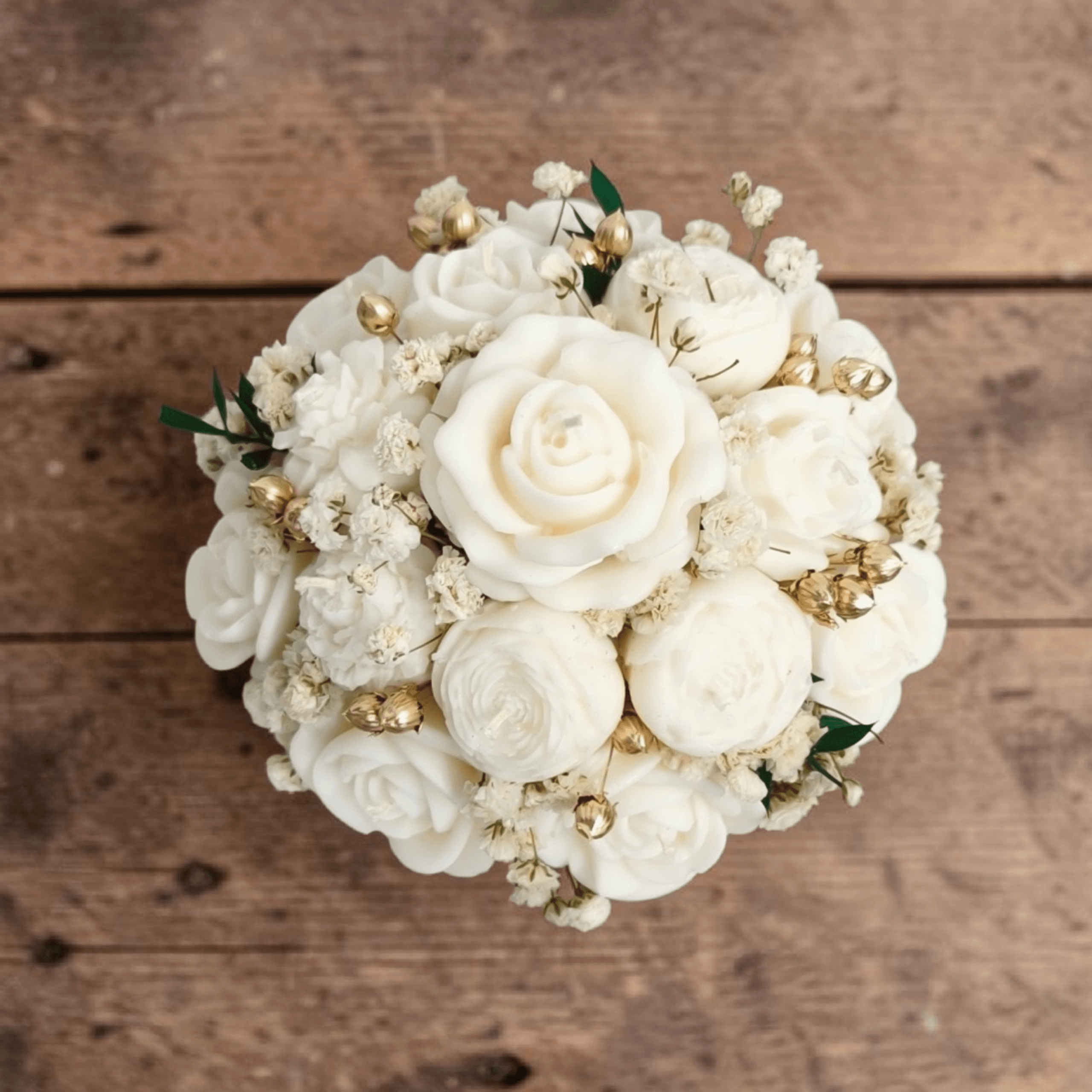 Flower Box biało-złoty mini – bukiet o zapachu piwonii