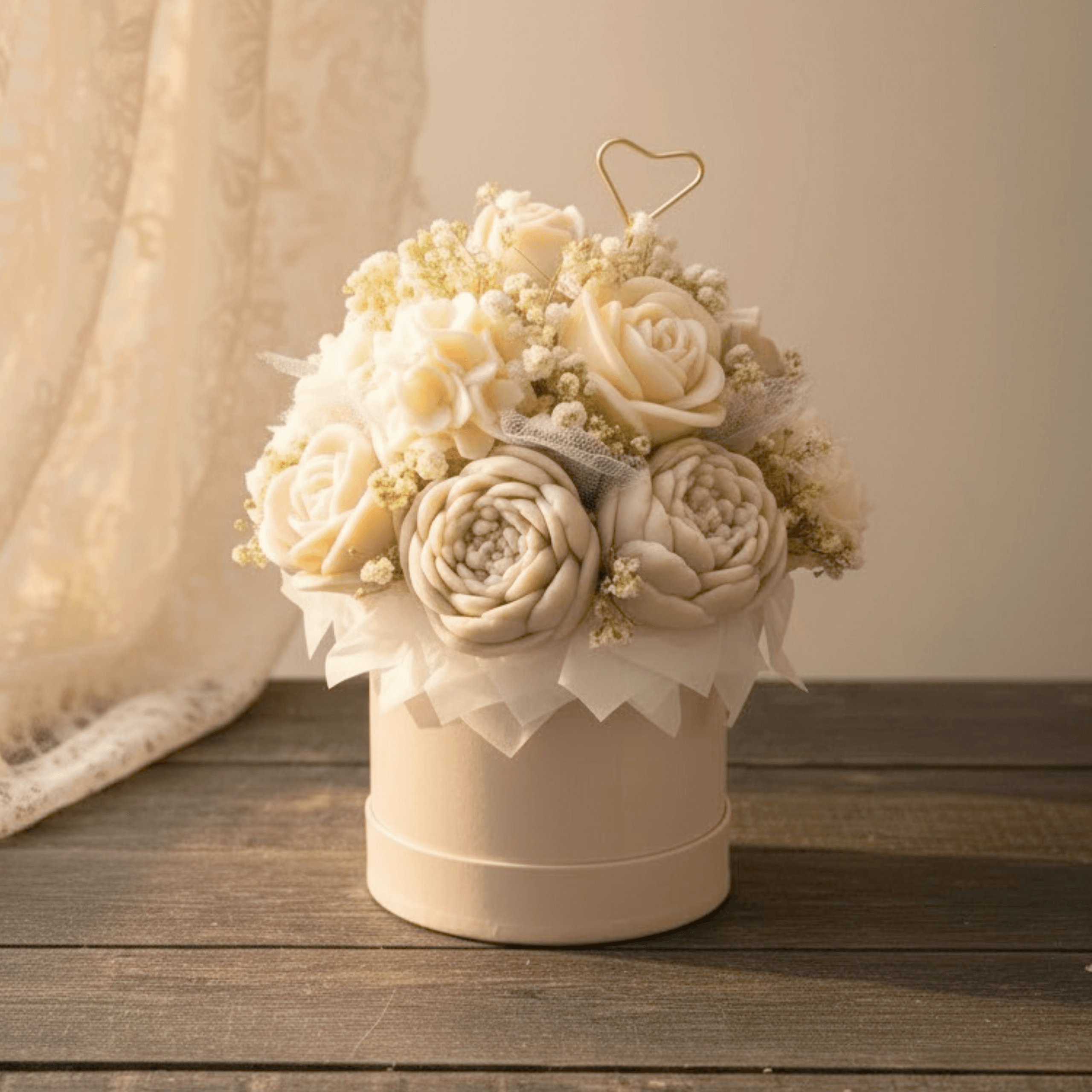 Elegancki flower box ze świec sojowych – beżowy to wyjątkowa alternatywa dla klasycznych kwiatów i jeden z tych prezentów, które od razu robią subtelne, ale niezapomniane wrażenie. Ręcznie wykonane świece sojowe w kształcie kwiatów zachwycają realistycznym wyglądem oraz delikatnym zapachem piwonii, który lekko unosi się w powietrzu i wprowadza do wnętrza świeżą, romantyczną nutę.