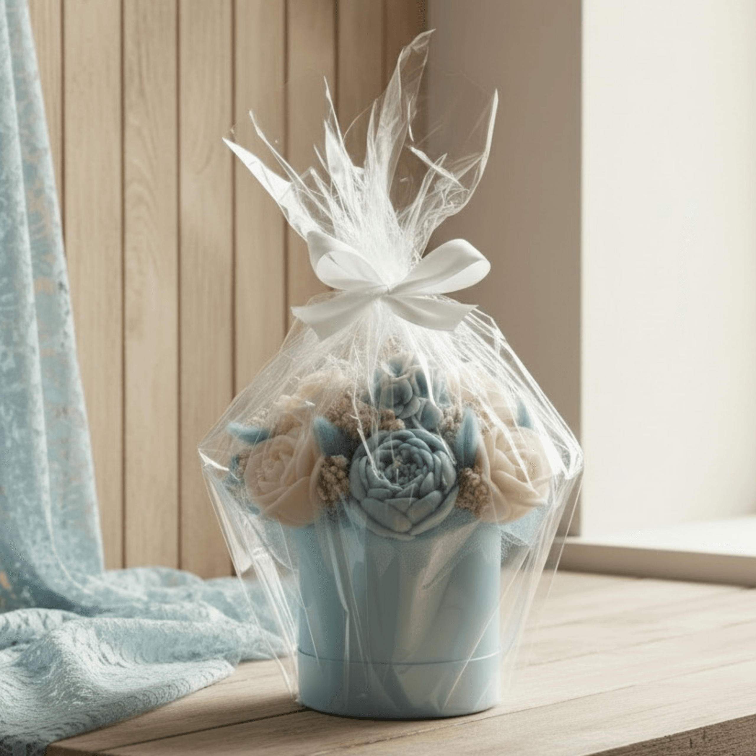 Elegancki flower box ze świec sojowych – błękitny o zapachu piwonii to subtelna alternatywa dla klasycznych kwiatów i wyjątkowy prezent, który zachwyca swoją lekkością. Ręcznie wykonane świece sojowe w kształcie kwiatów przyciągają uwagę delikatnym, pastelowym odcieniem błękitu oraz realistycznie odwzorowanymi detalami. Całość dopełnia zmysłowy zapach piwonii, który subtelnie unosi się w powietrzu, wprowadzając do wnętrza świeżą, harmonijną atmosferę.
