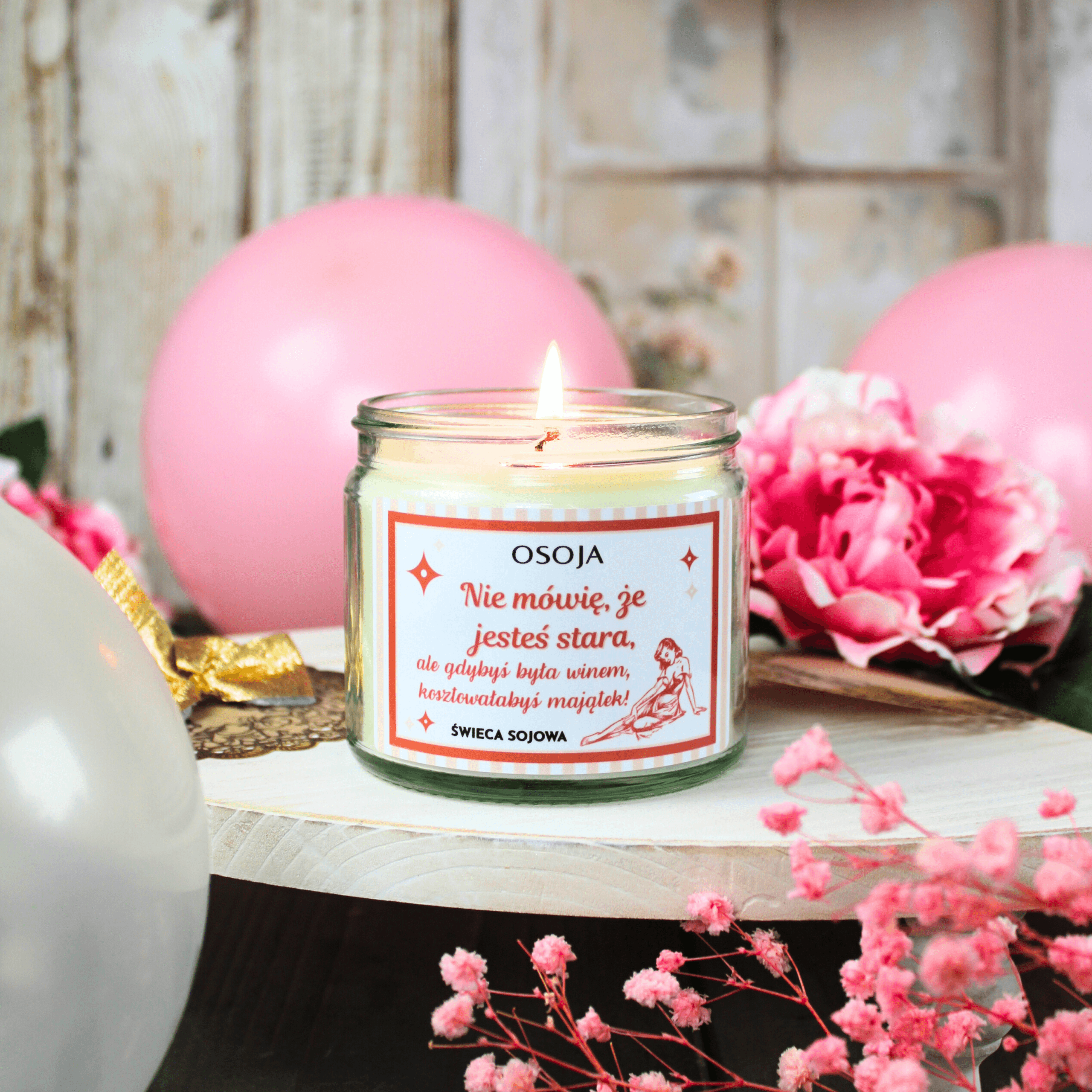 Świeca sojowa Nie mówię, że jesteś stara, ale gdybyś była winem, kosztowałabyś majątek! – urodzinowa ze szczerym napisem to idealny prezent urodzinowy dla kobiety z dystansem do siebie i poczuciem humoru. Tekst: „Nie mówię, że jesteś stara, ale gdybyś była winem, kosztowałabyś majątek!” bawi, rozładowuje napięcie i od razu robi urodzinowy klimat.